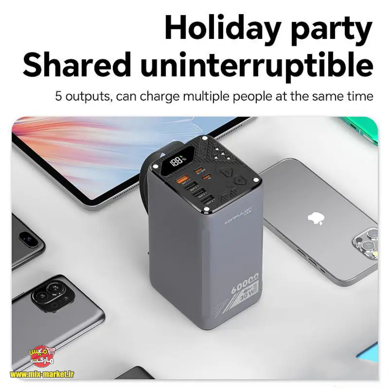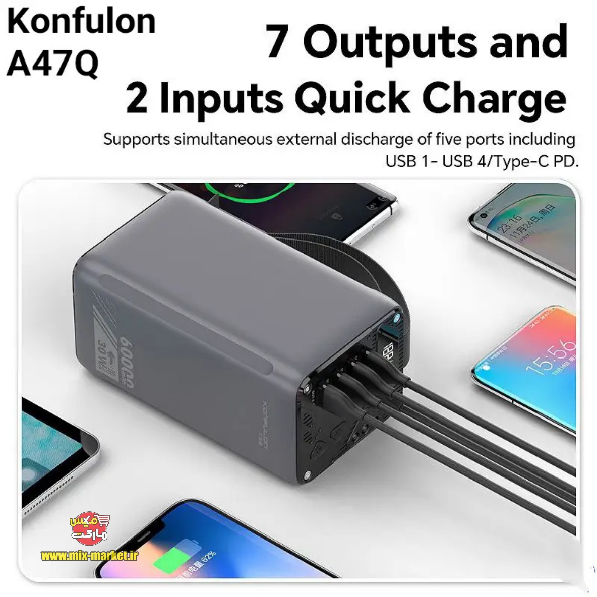 پاوربانک ۶۰۰۰۰ میلی آمپر سوپر فست شارژ ۳۰ وات کانفلون مدل Konfulon A47Q با 7 خروجی