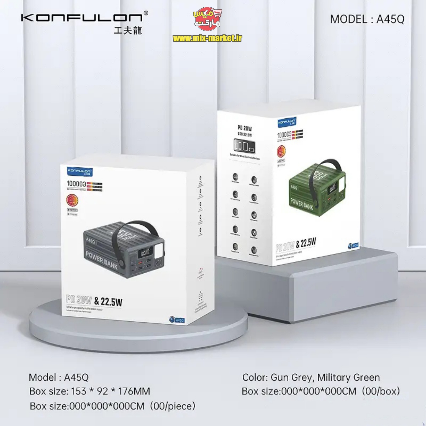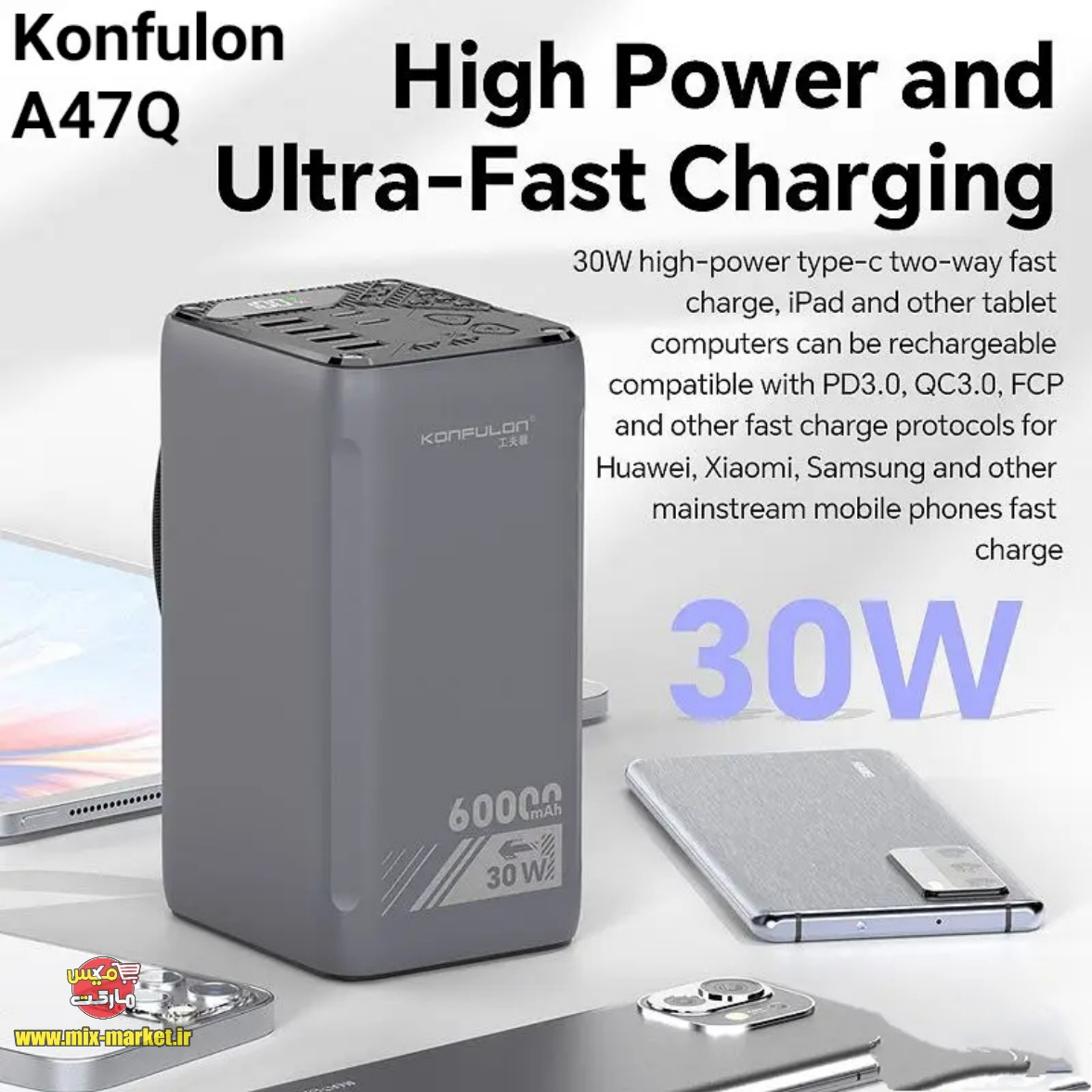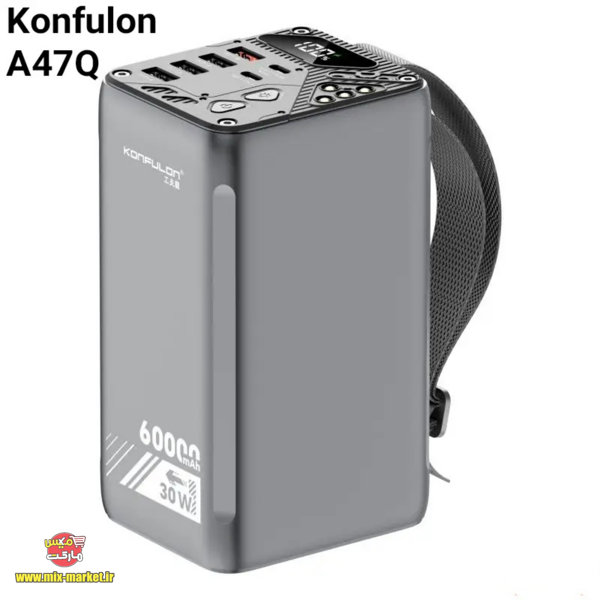پاوربانک ۶۰۰۰۰ میلی آمپر سوپر فست شارژ ۳۰ وات کانفلون مدل Konfulon A47Q با پشتیبانی از شارژ سریع 30 واتی