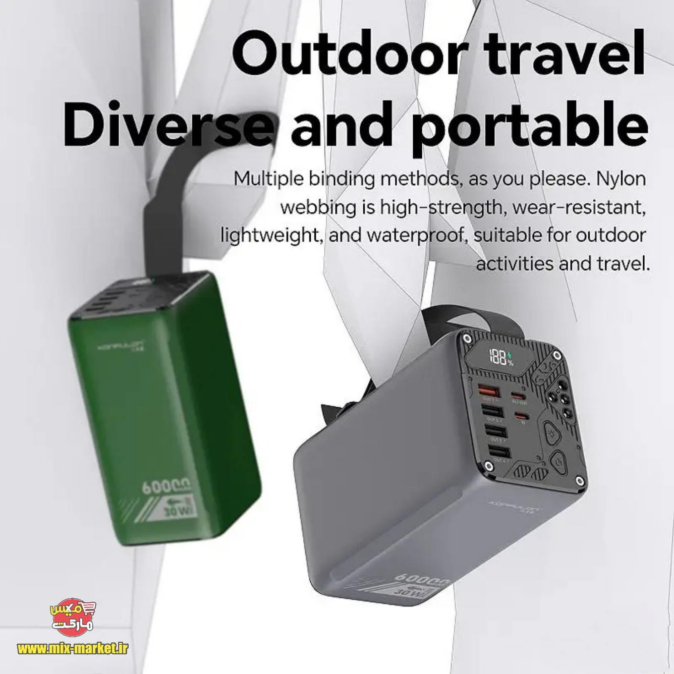 پاوربانک ۶۰۰۰۰ میلی آمپر سوپر فست شارژ ۳۰ وات کانفلون مدل Konfulon A47Q با قابلیت حمل آسان