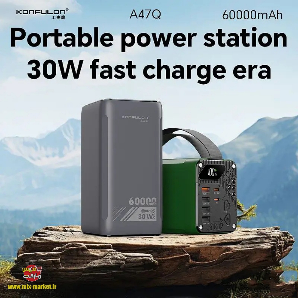 پاوربانک ۶۰۰۰۰ میلی آمپر سوپر فست شارژ ۳۰ وات کانفلون مدل Konfulon A47Q: قدرت و قابلیتهای بینظیر در دستان شما